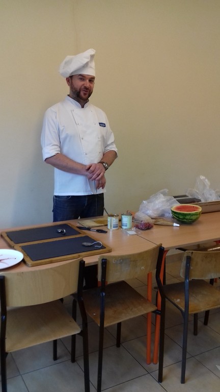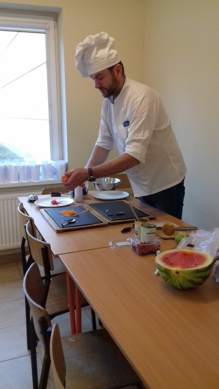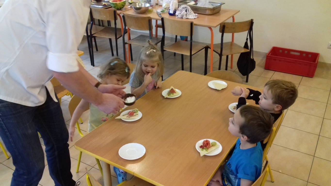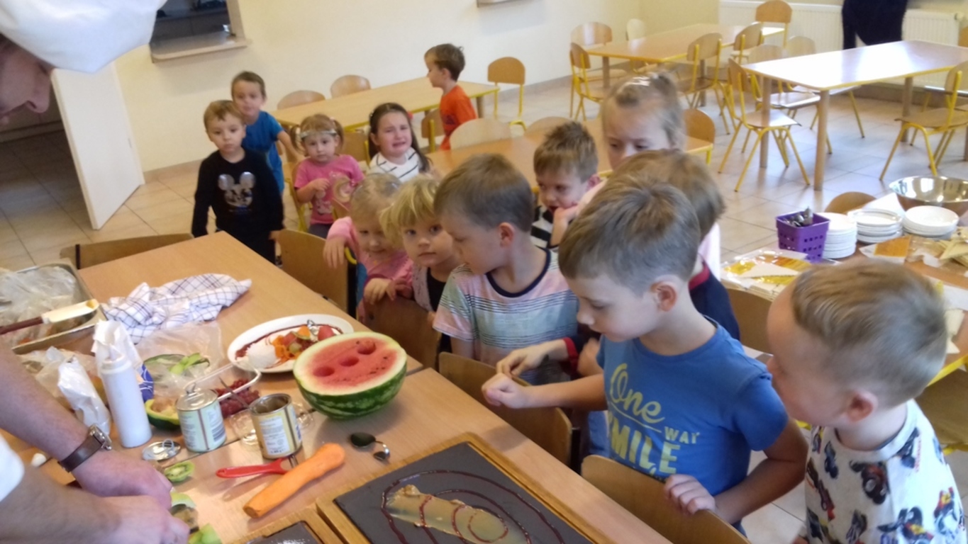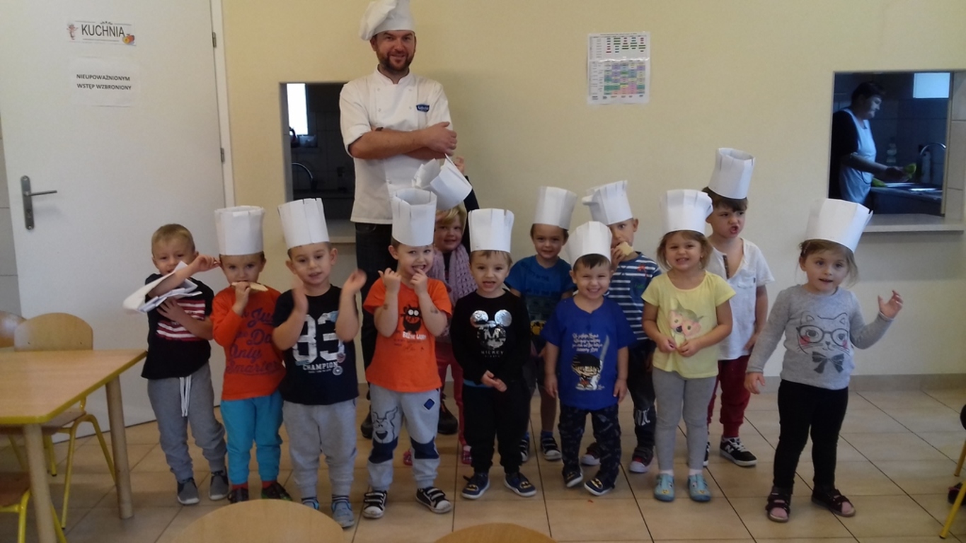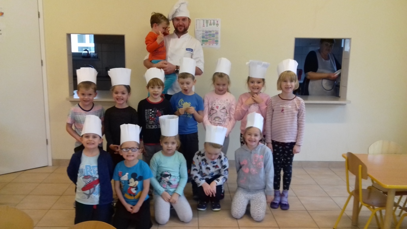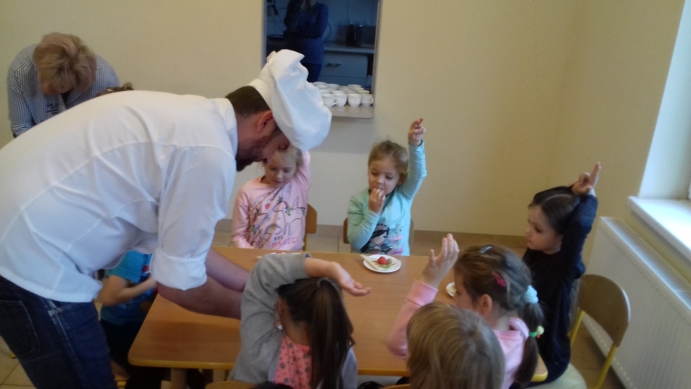 który jest kucharzem. Opowiedział on dzieciom o swoim zawodzie, zaprezentował najczęściej