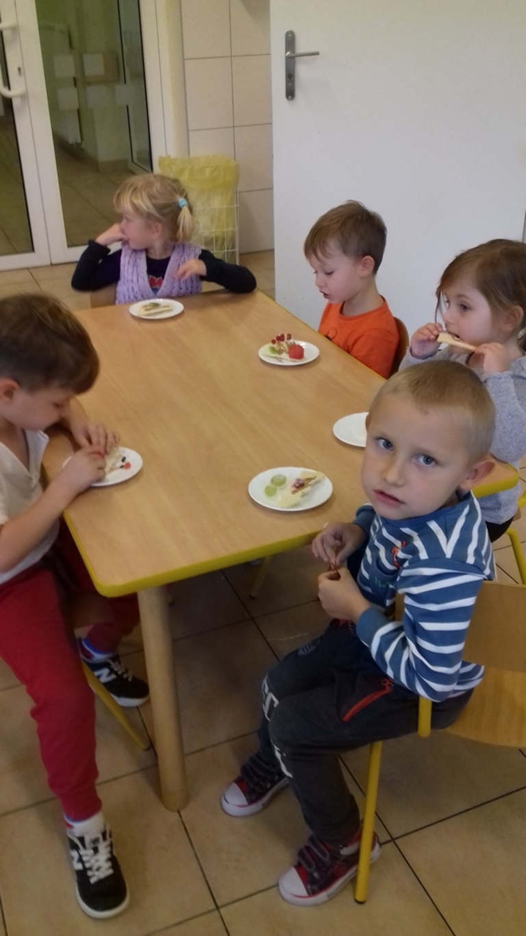 udekorować talerz. Przedszkolaki miały okazję własnoręcznie przygotować sobie słodki i zdrowy
